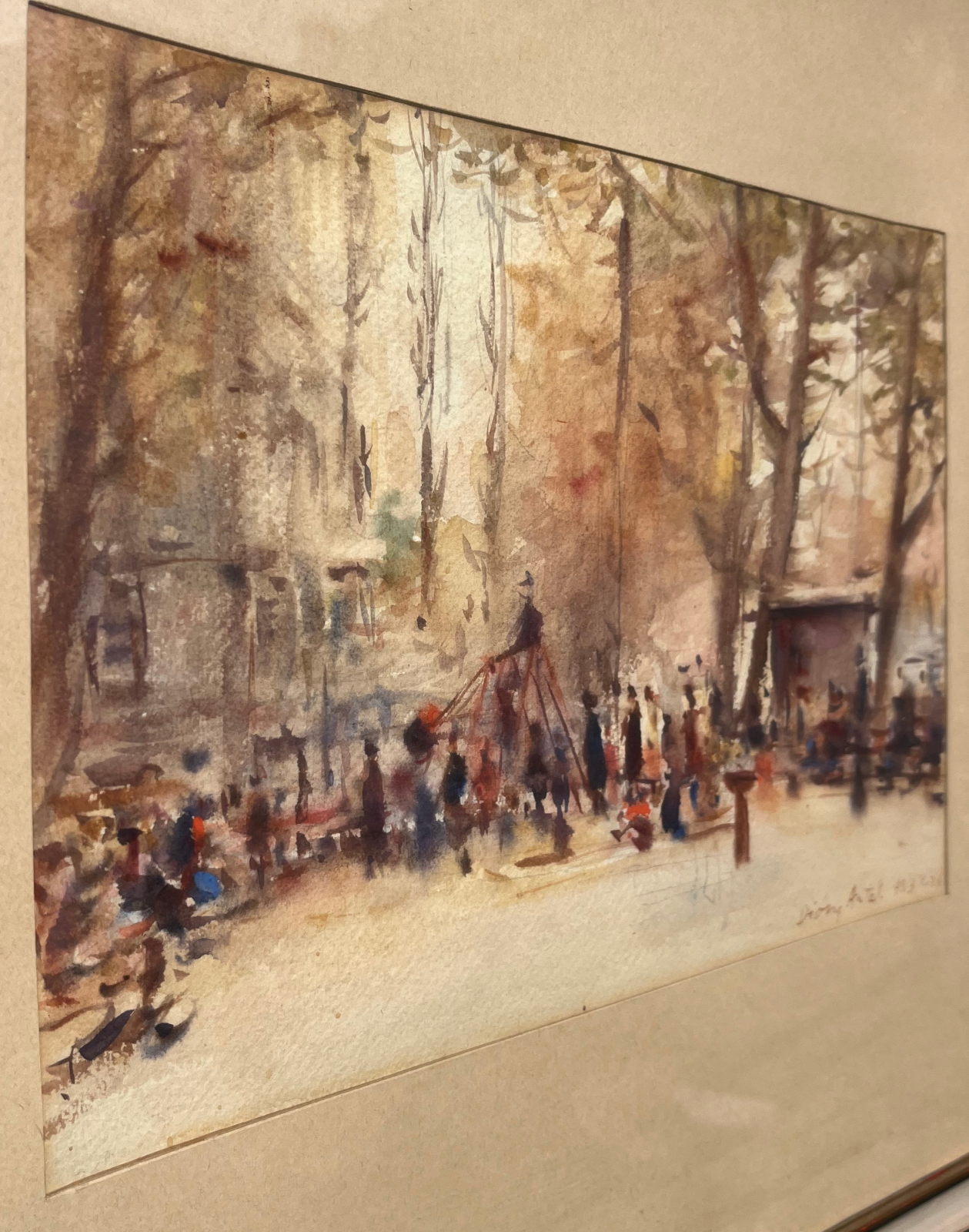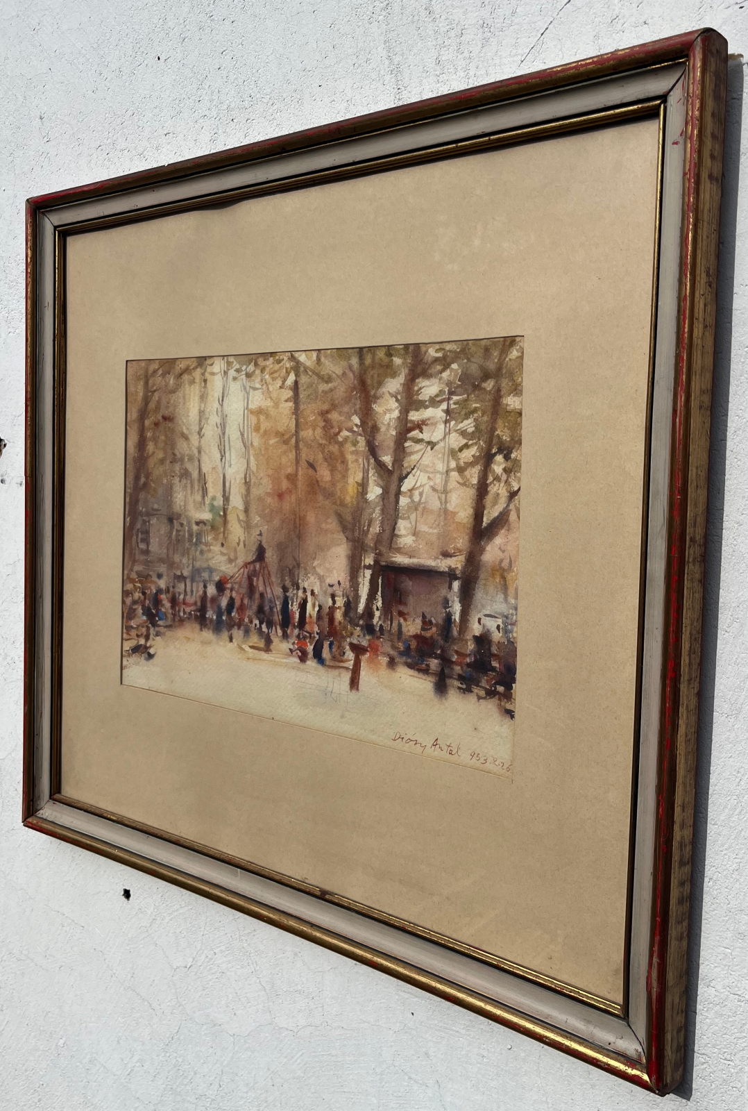 58 000.-ft * Diósy Antal (1895 - 1977) 1953 X,26 Park , akvarell festménye keretel (54 x 49 ) (28 x 21)