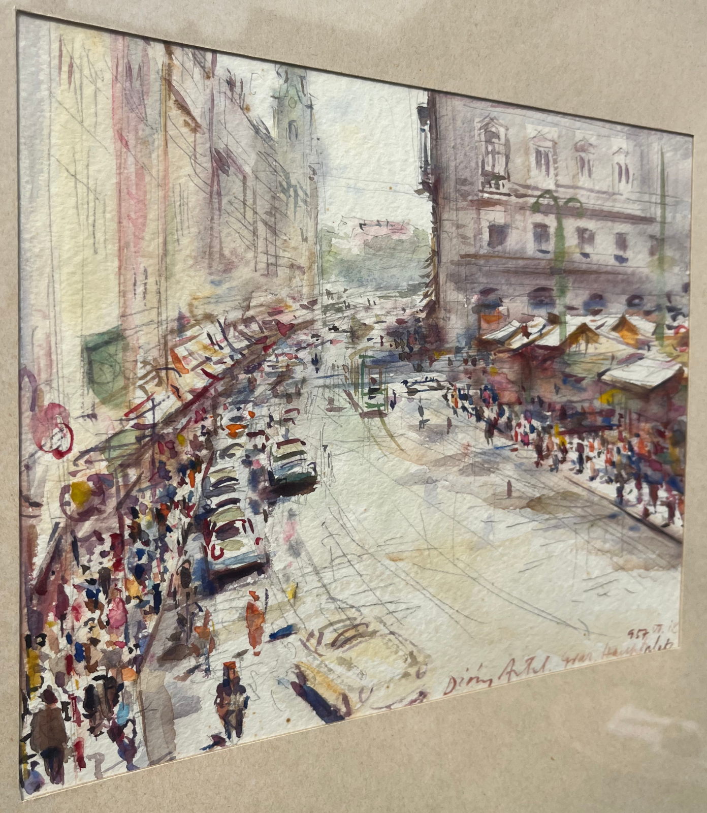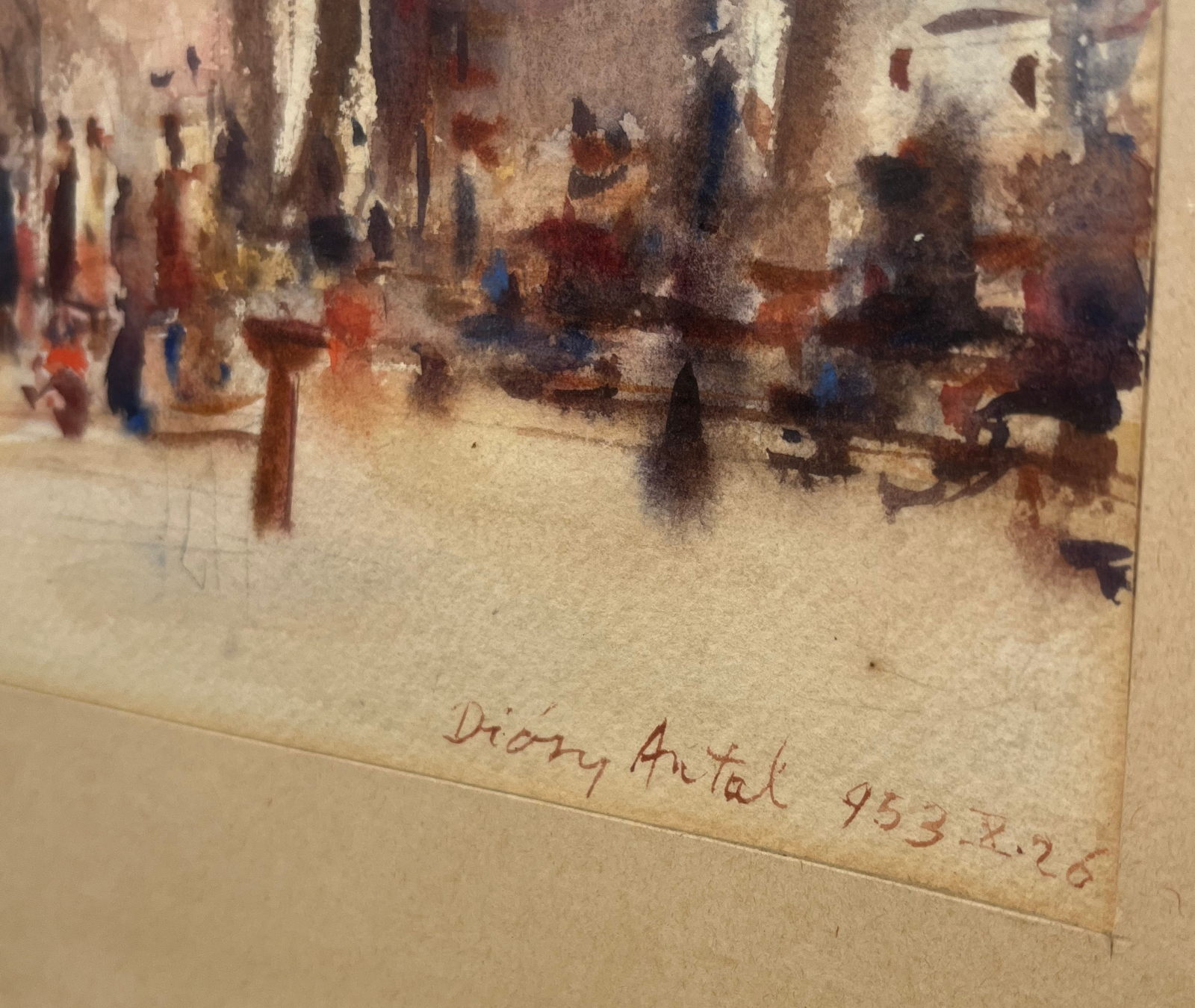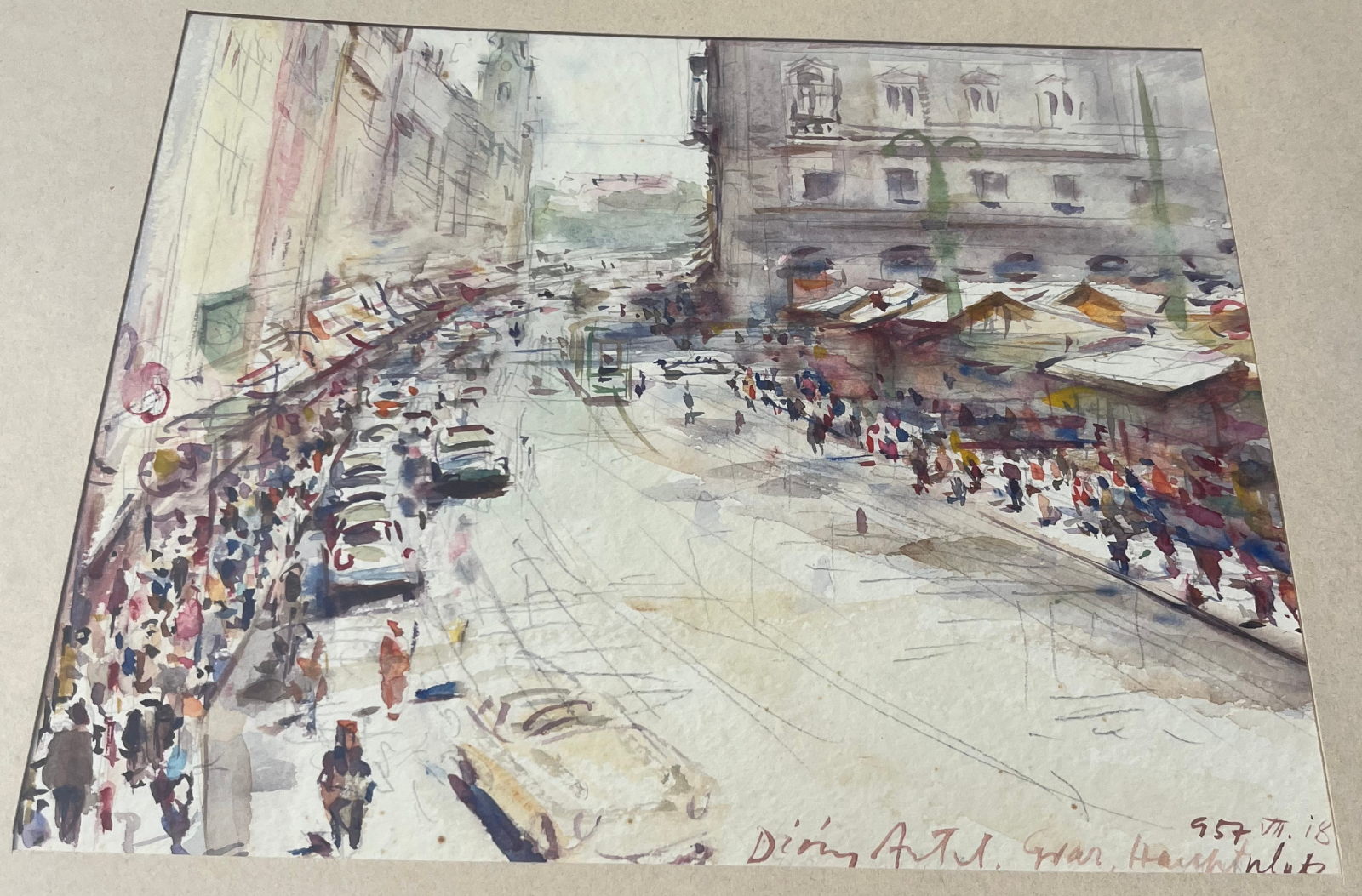 58 000.-ft * Diósy Antal (1895 - 1977) Graz hauptplatz 1957 VII.18 akvarell festménye kerettel (65 x 55) keret nélkül (29 x 23)