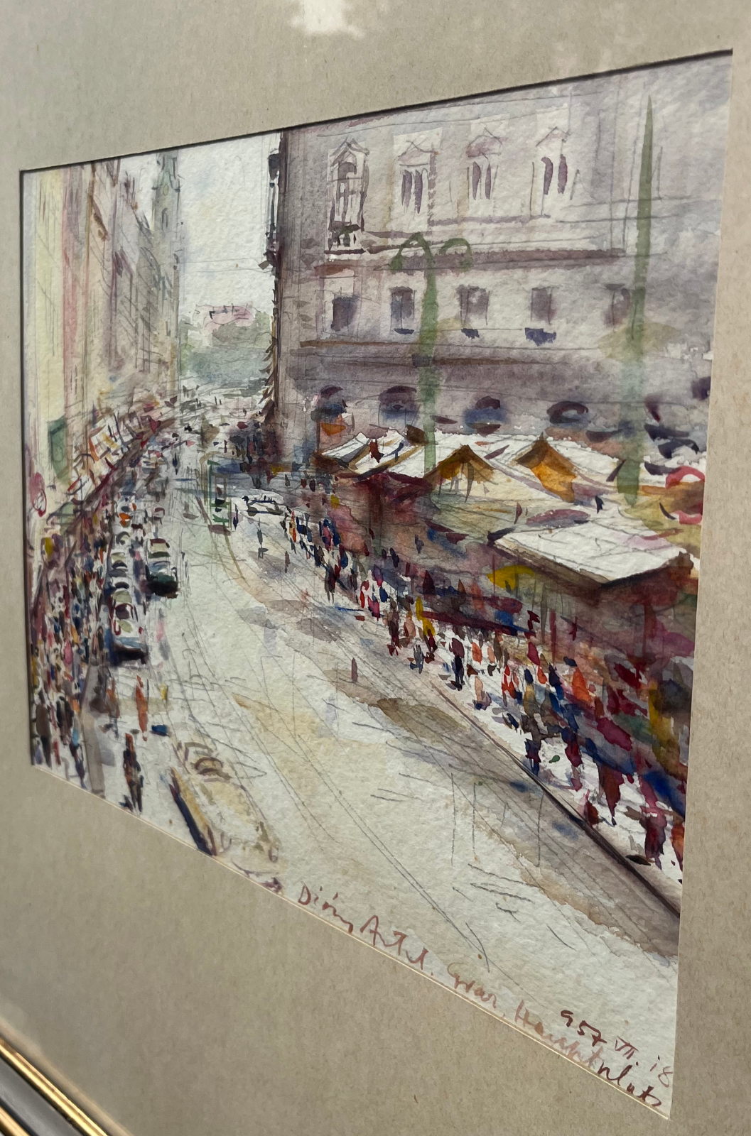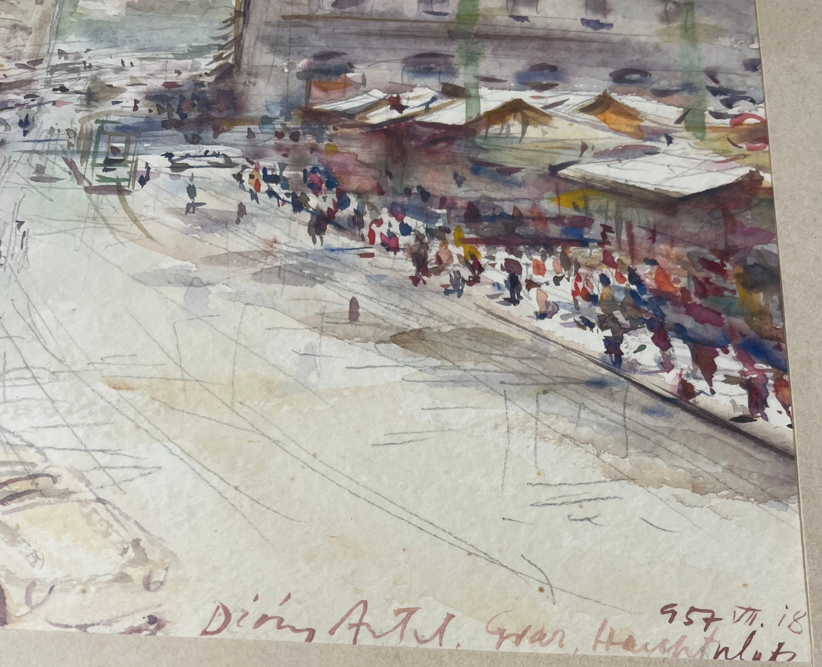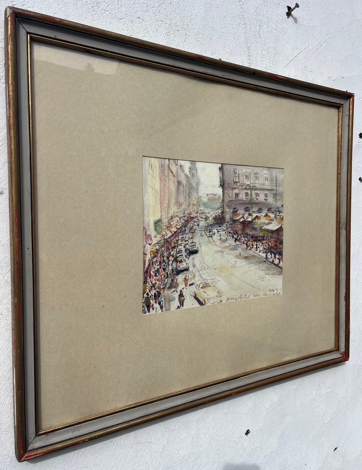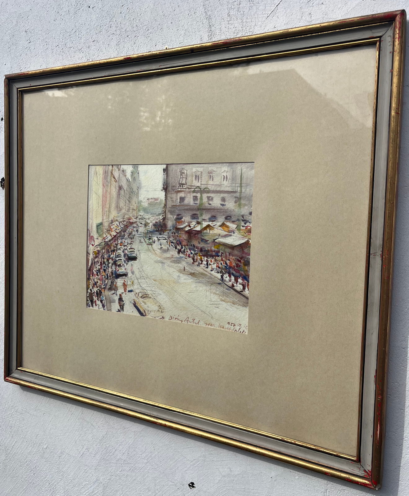 58 000.-ft * Diósy Antal (1895 - 1977) Graz hauptplatz 1957 VII.18 akvarell festménye kerettel (65 x 55) keret nélkül (29 x 23)