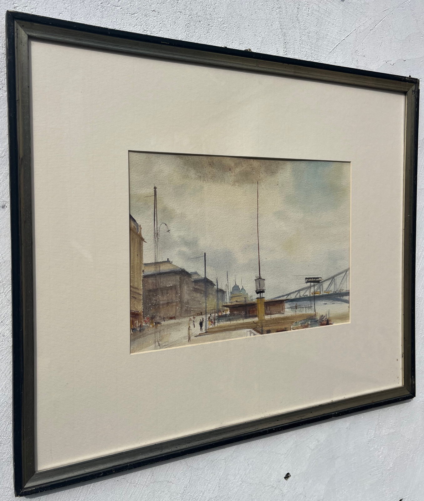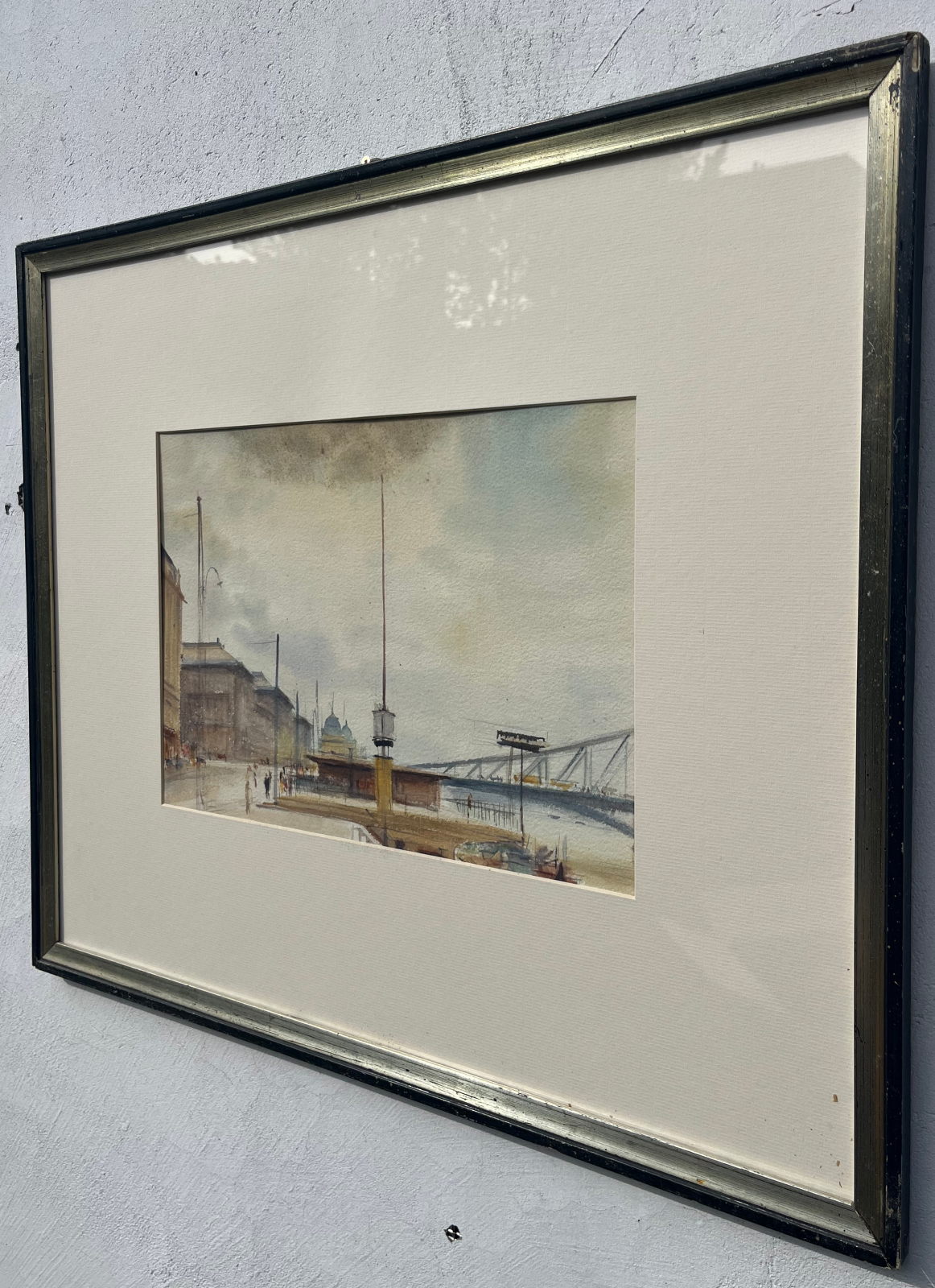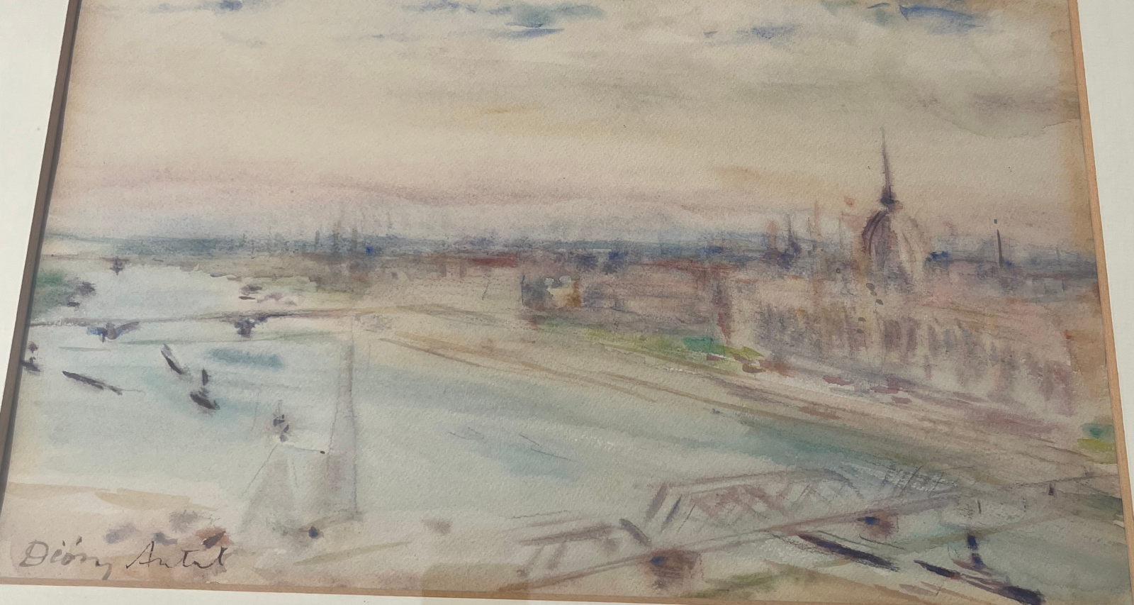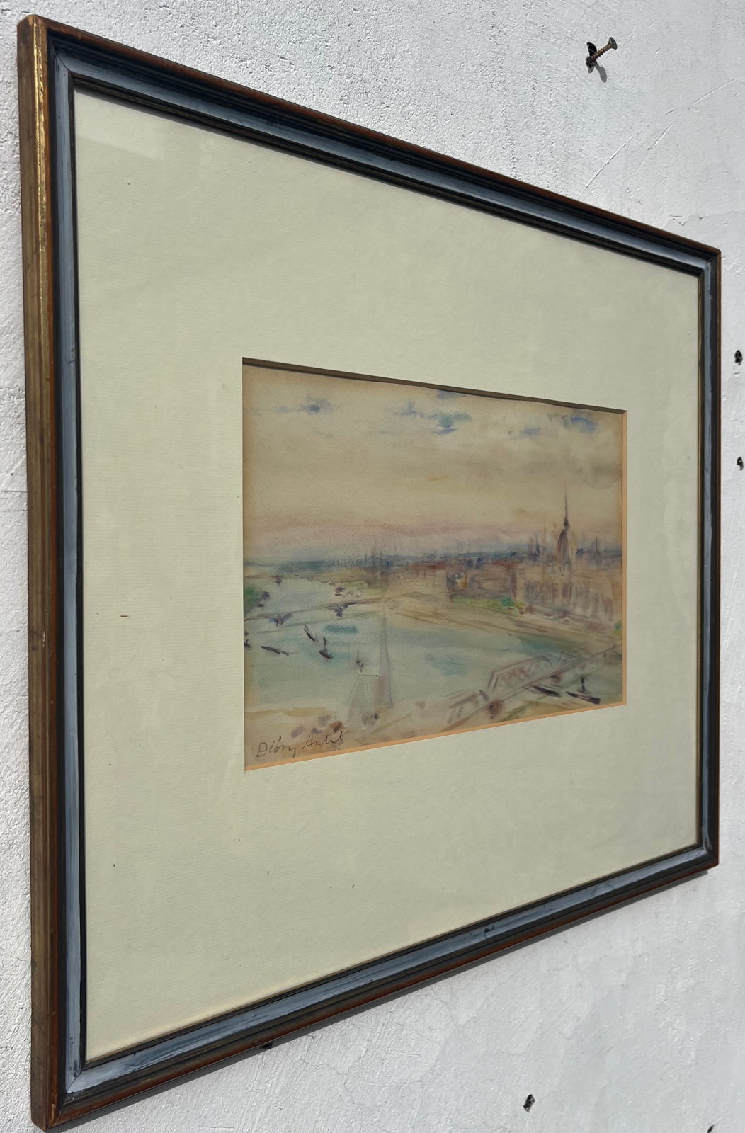 58 000.-ft * Diósy Antal (1895 - 1977) Ferenc József rakpart 1954 akvarell festménye kerettel (62 x 52) keretn nélkül (30 x 20)