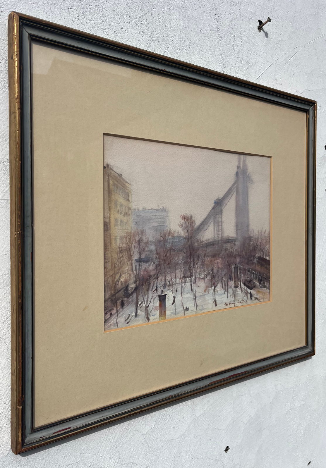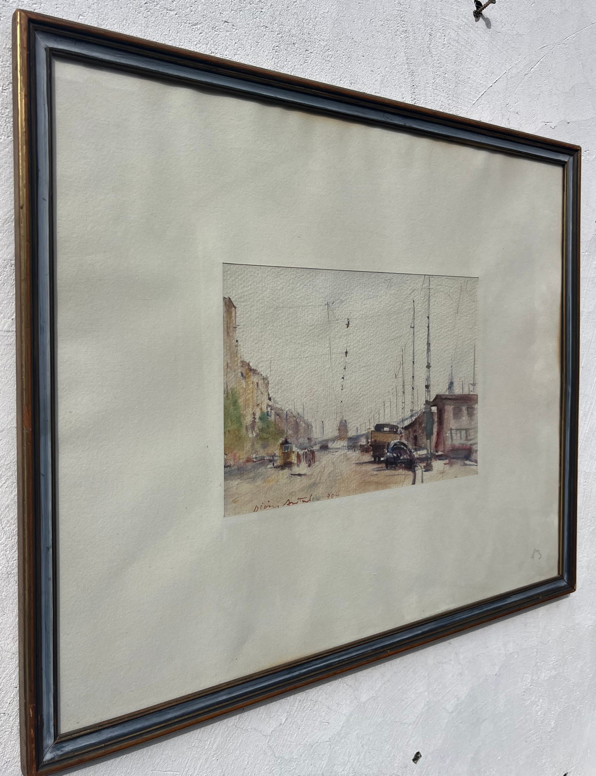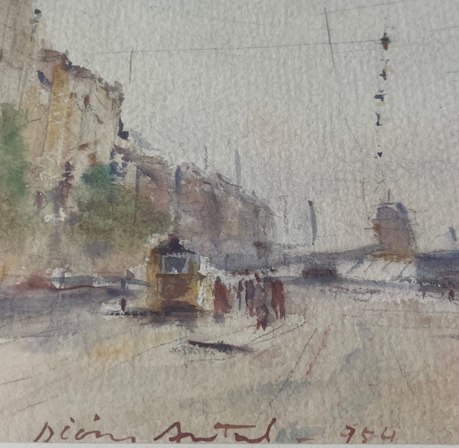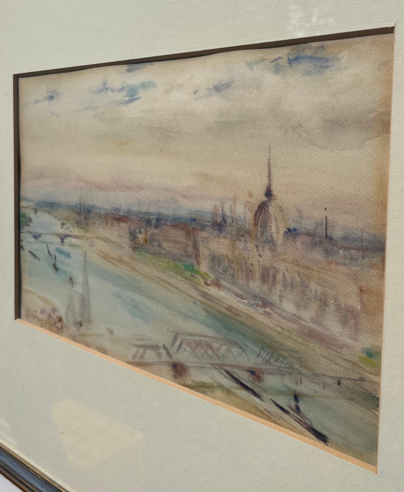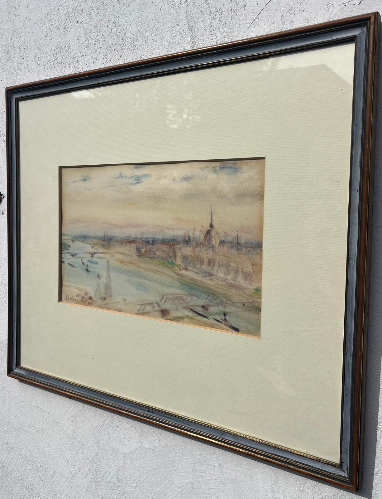 58 000.-ft * Diósy Antal (1895 - 1977) Ferenc József rakpart 1954 akvarell festménye kerettel (62 x 52) keretn nélkül (30 x 20)
