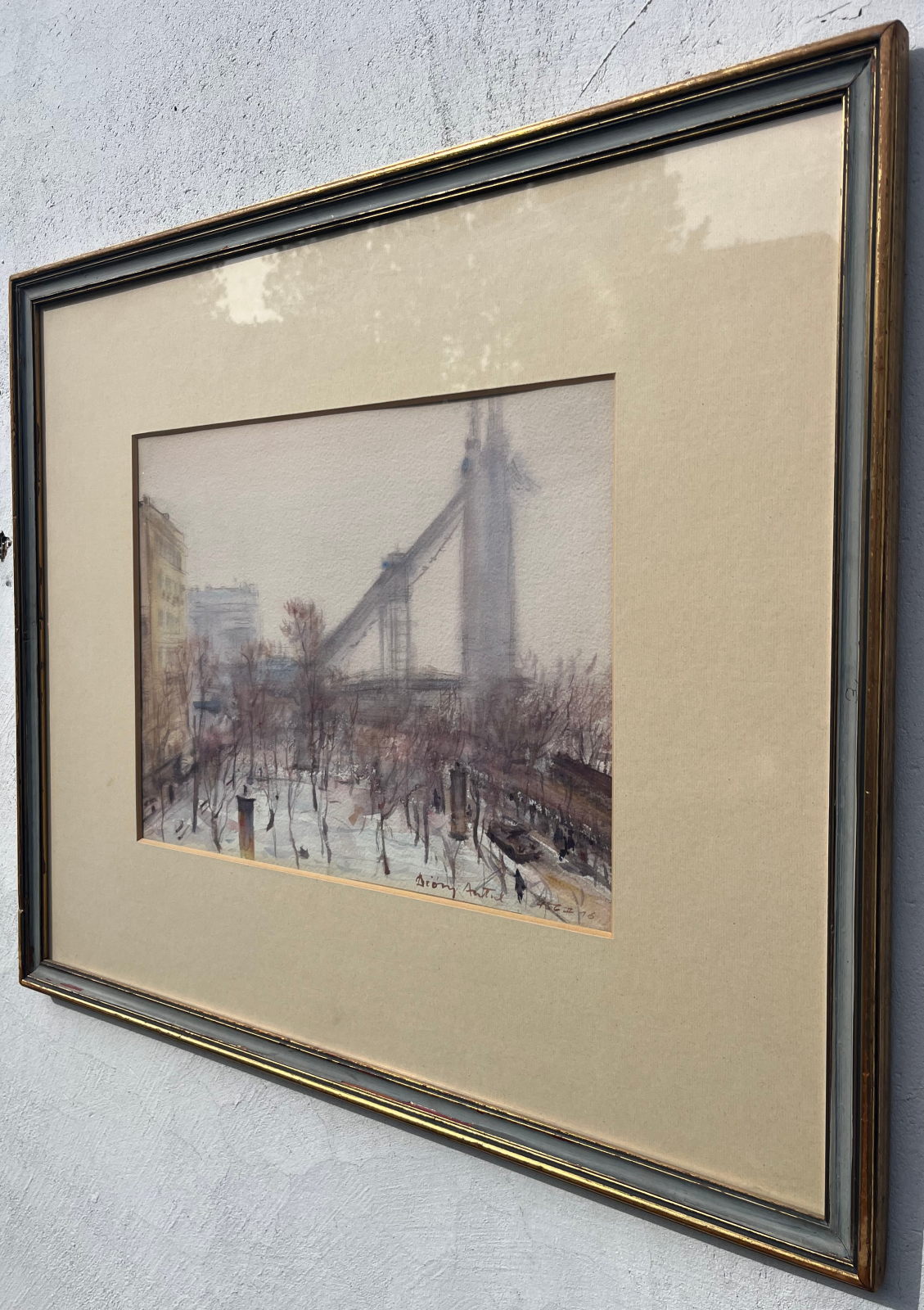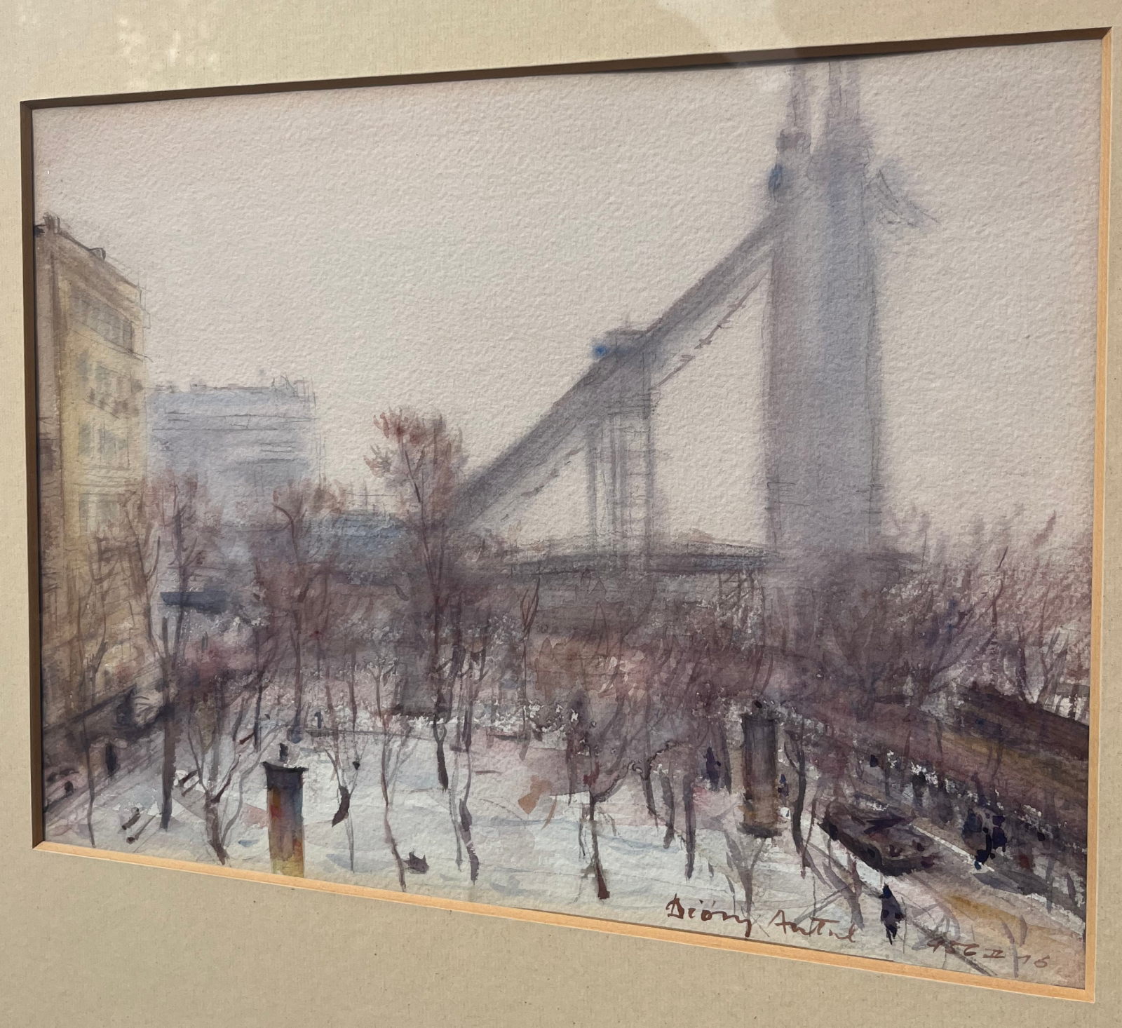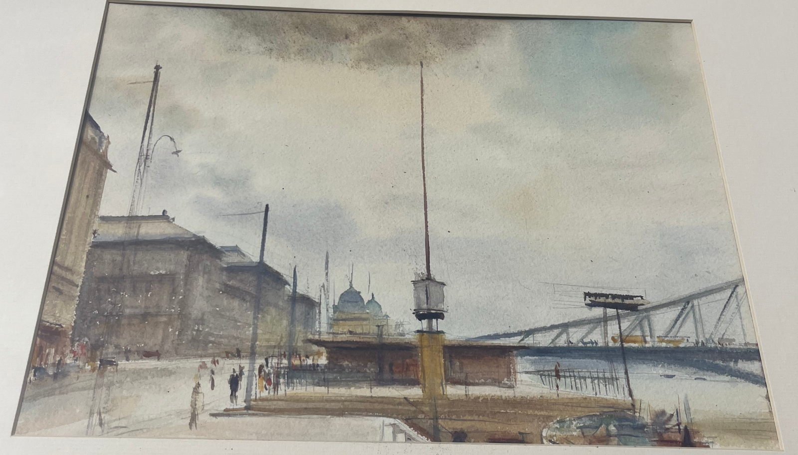 58 000.-ft * Diósy Antal (1895 - 1977) Épűlő szabadség híd 1956 II.16 akvarell festménye kerettel (62 x 52) keret nélkül (36 x 27)