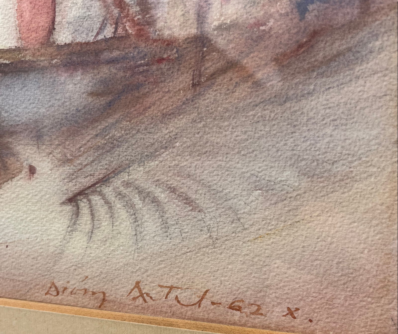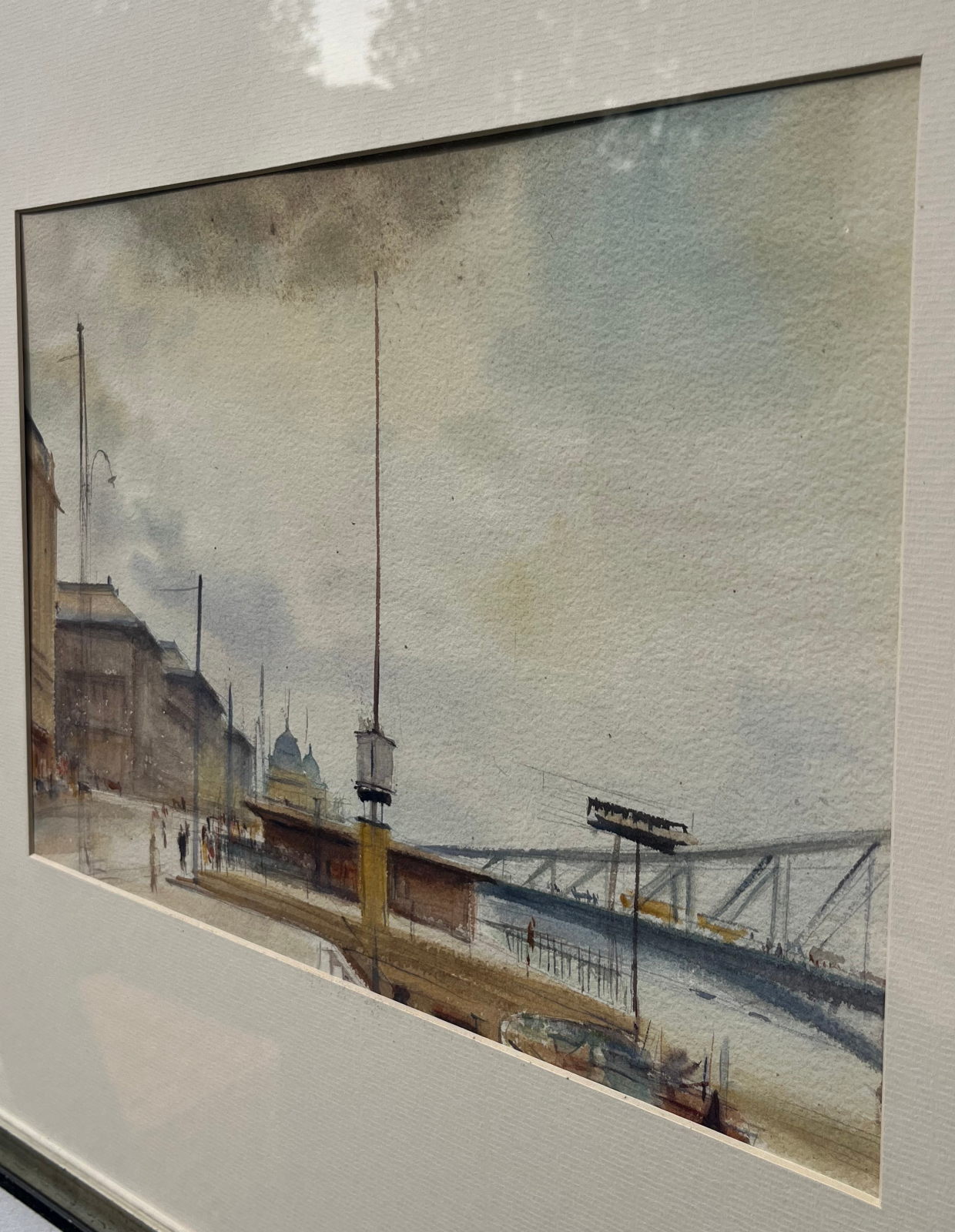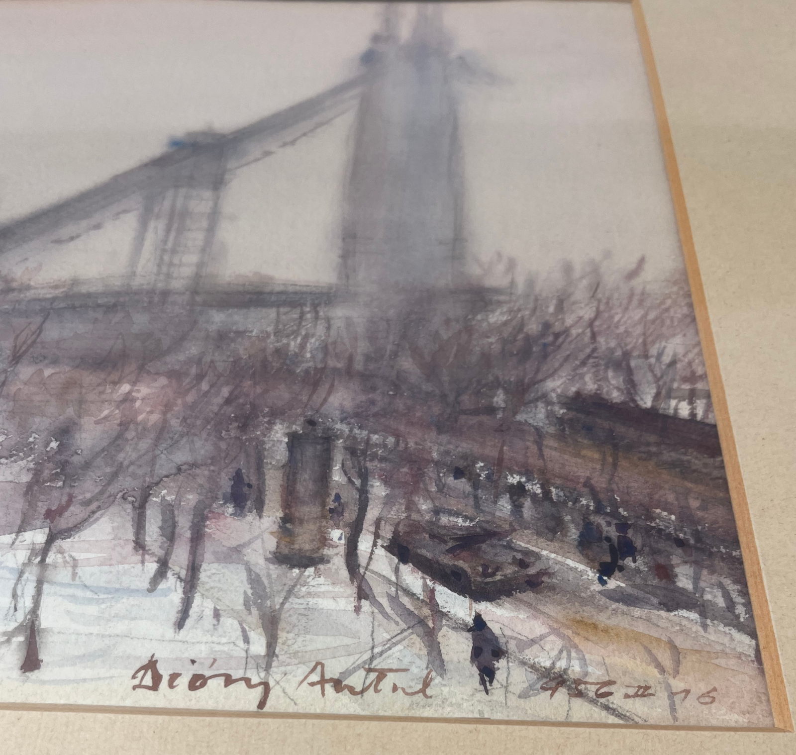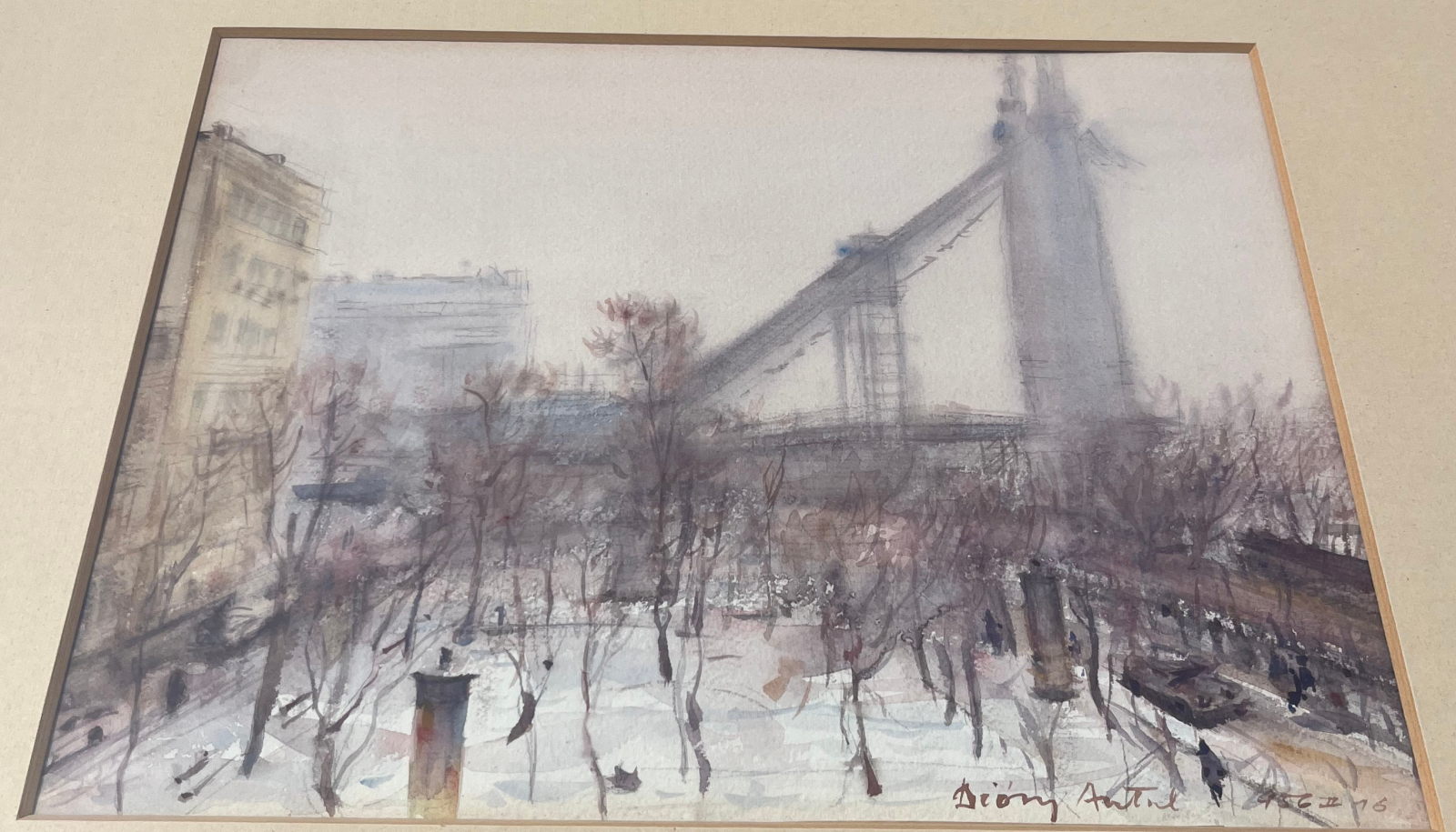 58 000.-ft * Diósy Antal (1895 - 1977) Épűlő szabadség híd 1956 II.16 akvarell festménye kerettel (62 x 52) keret nélkül (36 x 27)