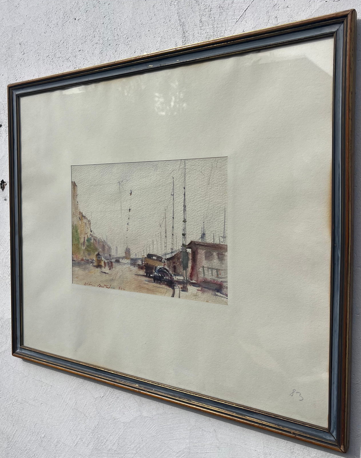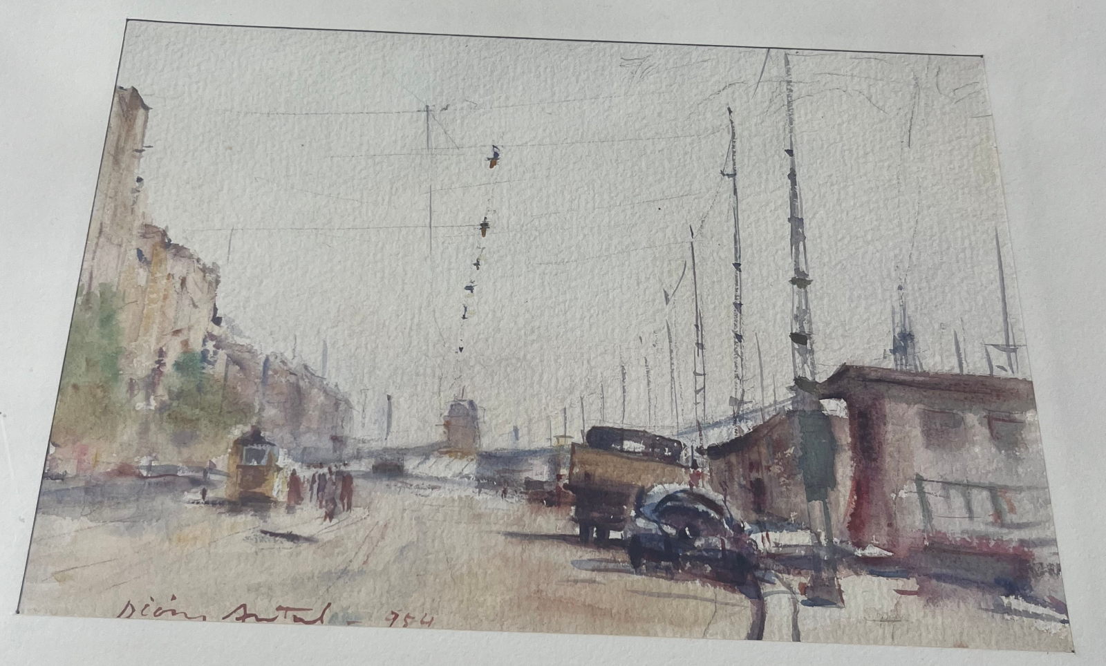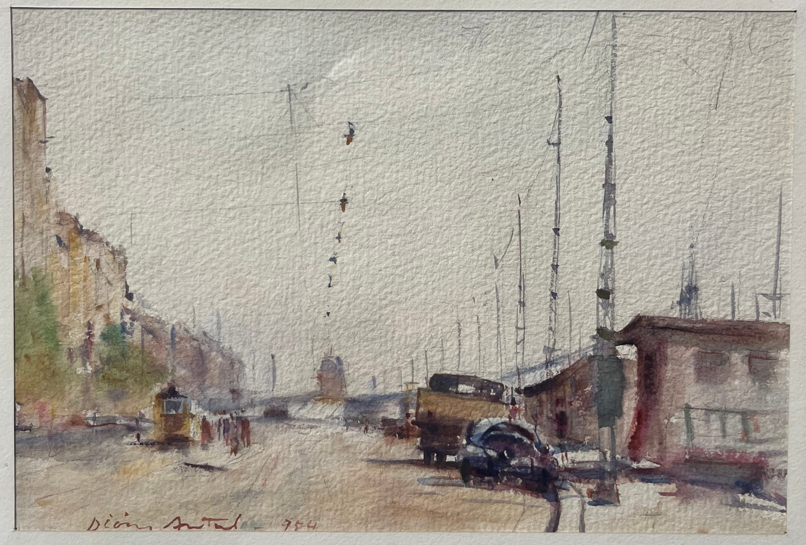 58 000.-ft * Diósy Antal (1895 - 1977) Kikötő ferenc József parton 1961 V . akvarell festménye kerettel (65 x 55) keret nélkül (37 x 26)