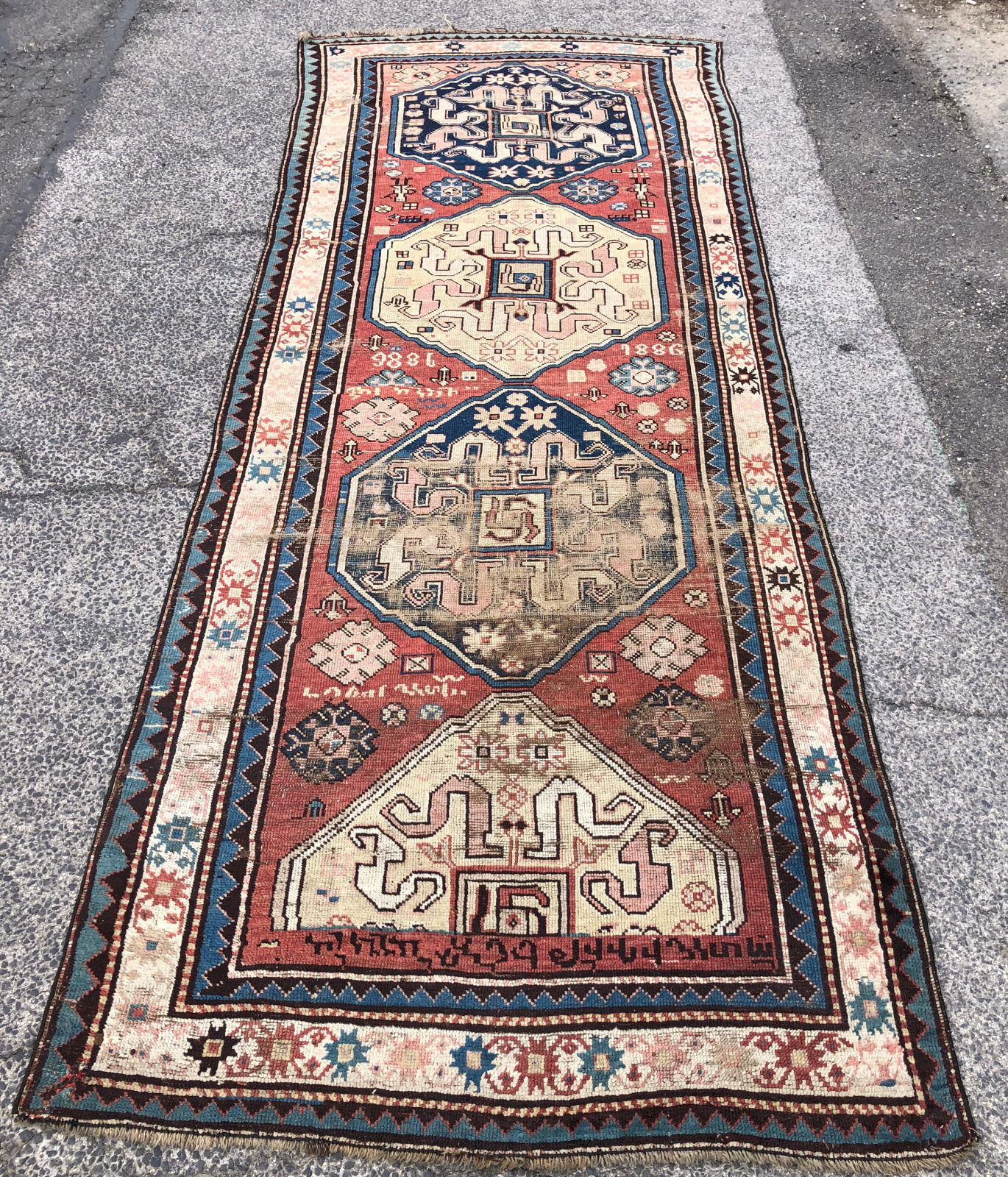 149 900 ft * Antik kézi csomózású 1886' 110 x 310 nagy futó szőnyeg