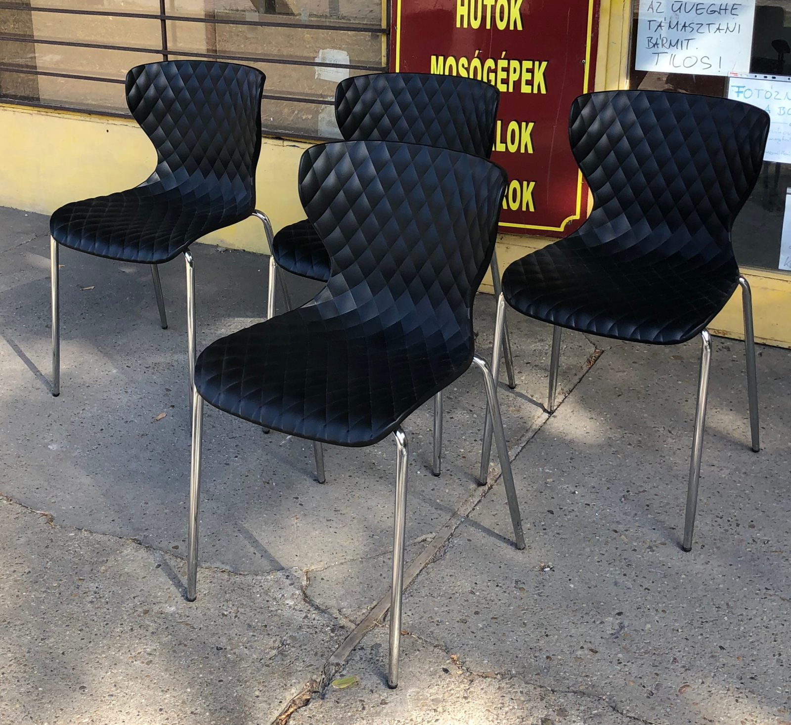 300 000 ft * Steelcase Tom Grasman króm keret öntött műanyag egymásra rakható szék készlet 6db ( 52szél 59mély 45/80mag)