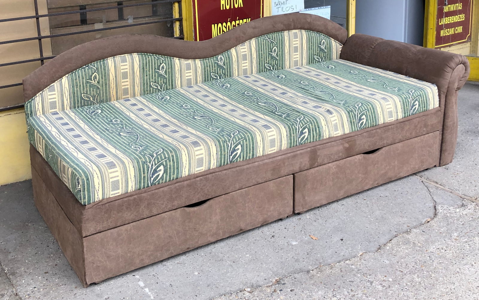 22 800 ft Zöld csíkos javított kanapé ( 220szél 80/160mély 50/90mag)