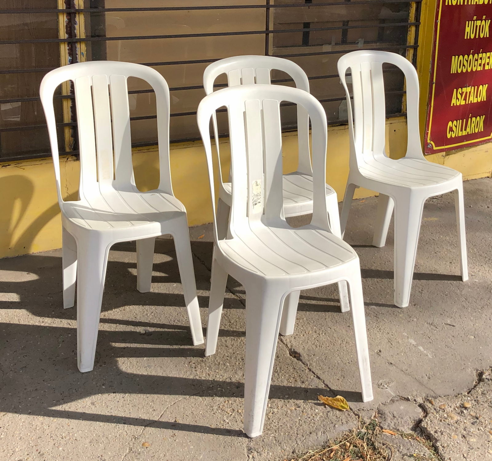 12 000ft * Fehér műanyag kertiszék 4db ( 40szél 37mély 45/100mag)