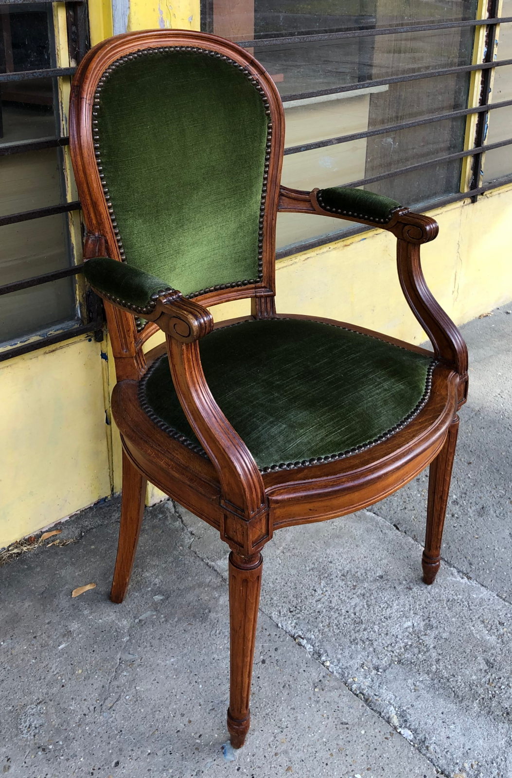 17 800 ft * Zöld kárpitos karfás- szék ( 50szél 57mély 42/100mag)