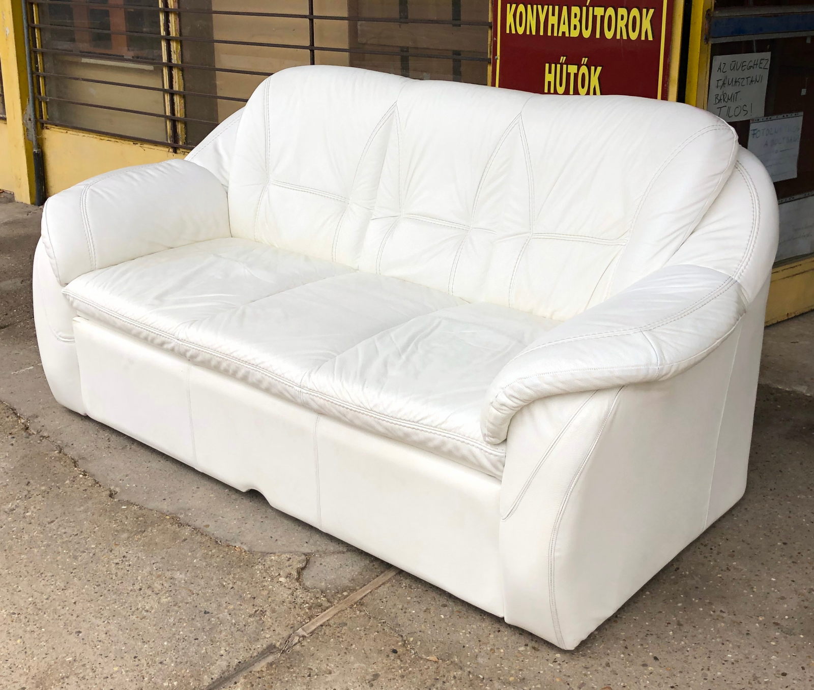 112 800 ft * Fehér bőr kanapé ( 190szél 90mély 40/100mag)