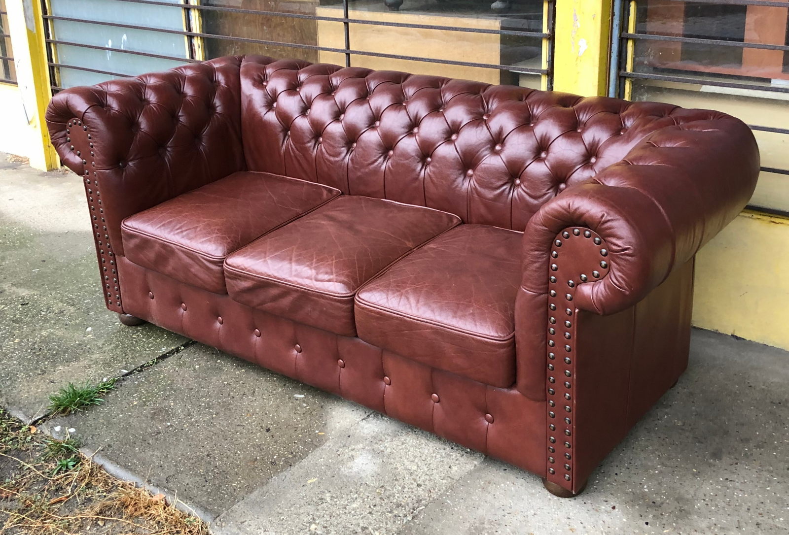 120 000 ft * CHESTERFIELD BŐR KANAPÉ ( 190szél 90mély 40/80mag)