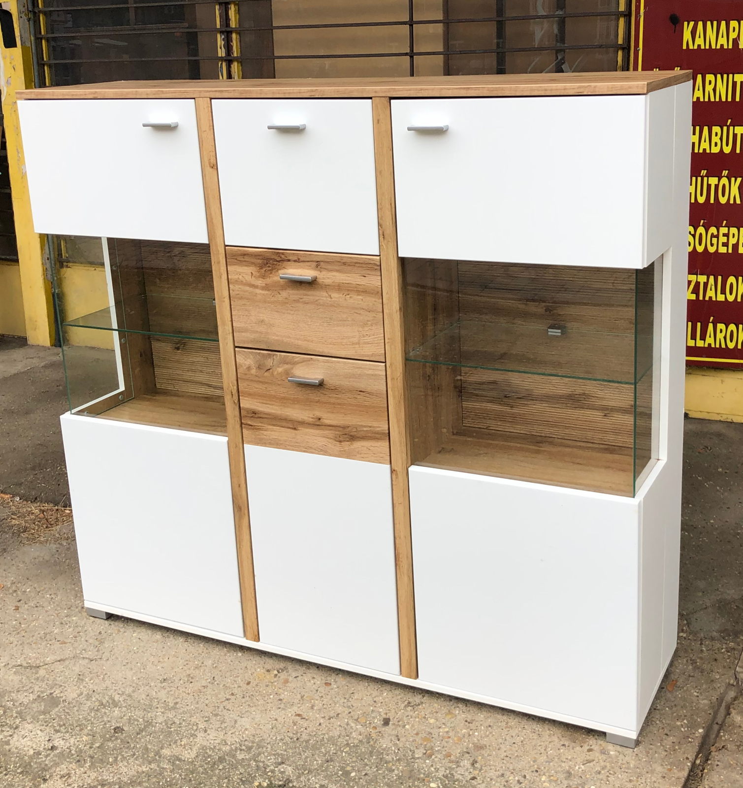 89 900.-ft * Tálalószekrény Alamo fehér, tölgyfa színű faalapú anyag