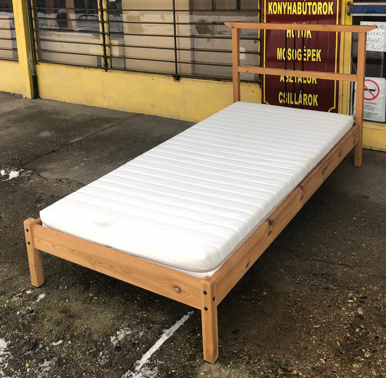 22 800 ft * Fenyő ágykeret + matrac ( 90szél 200mély 40/120mag)