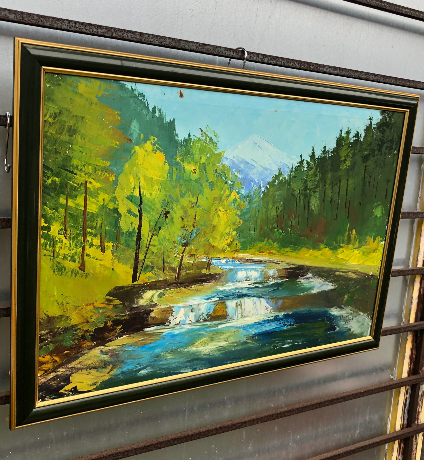 14 000 ft * Erdei patak olaj vászon festmény jelzett (65 x 40)