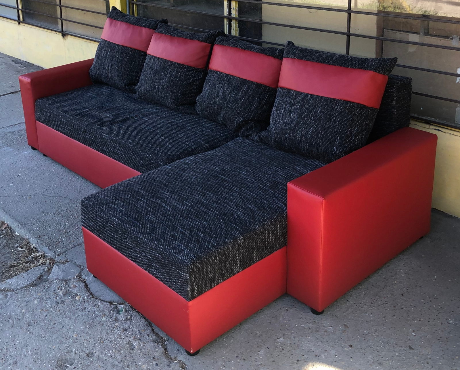 69 900 ft * Piros - fekete sarokkanapé ( 230szél 120mély 45/70mag)
