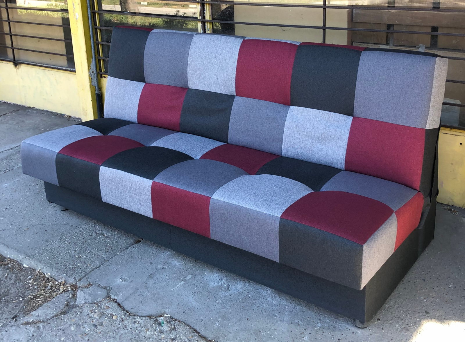 78 800 ft * Bordó - szürke kockás kanapé ( 190szél 80mély 45/90mag)