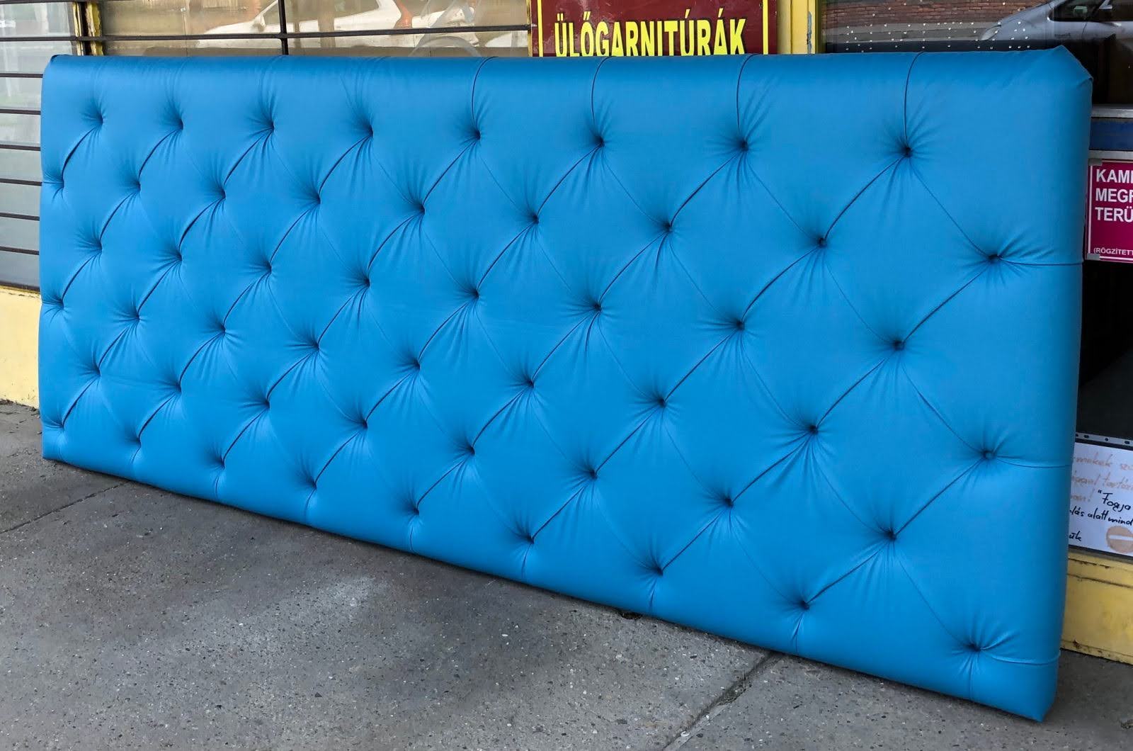 99 800 ft * Türkizkék mélytüzött nagy bőr fejtámla / fejvég ( 300szél 10mély 120mag)