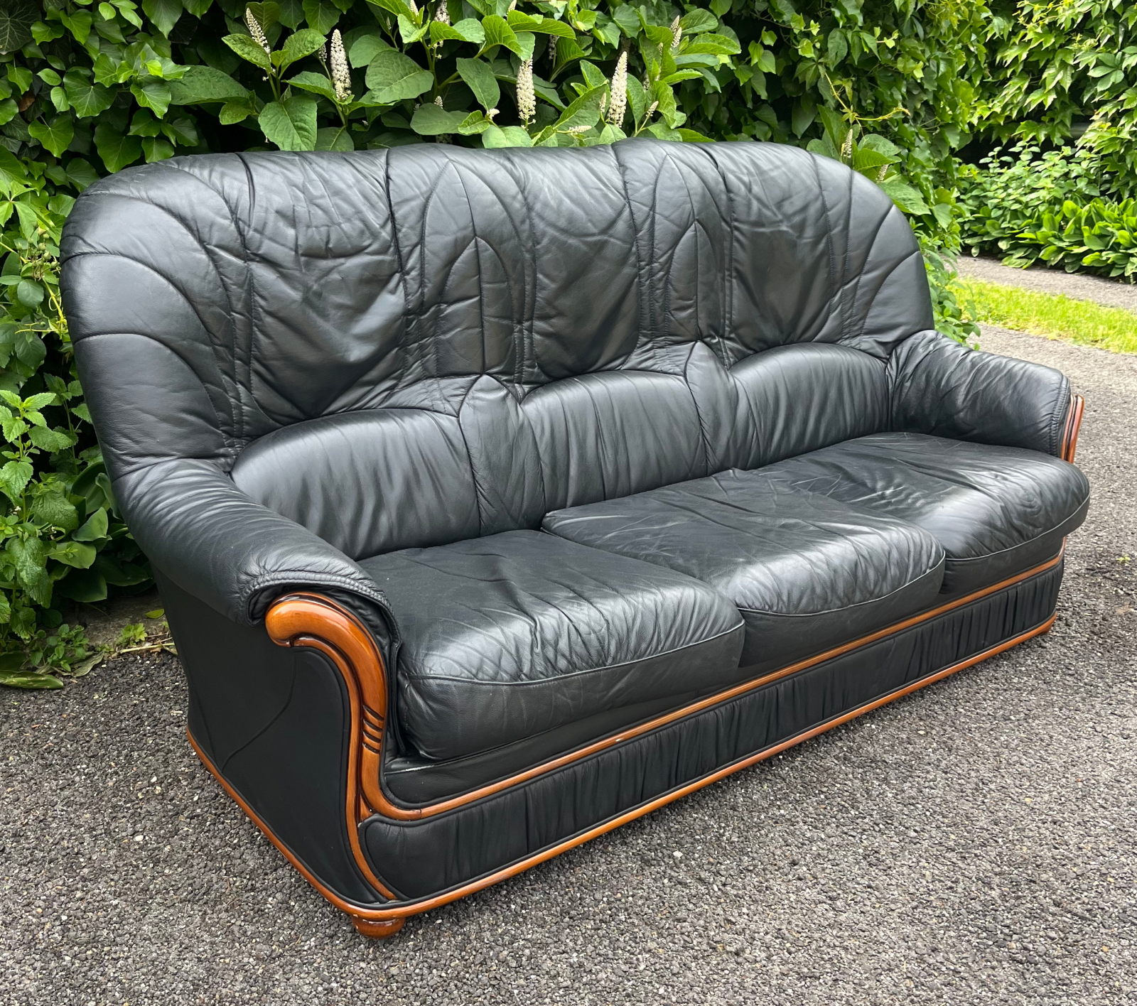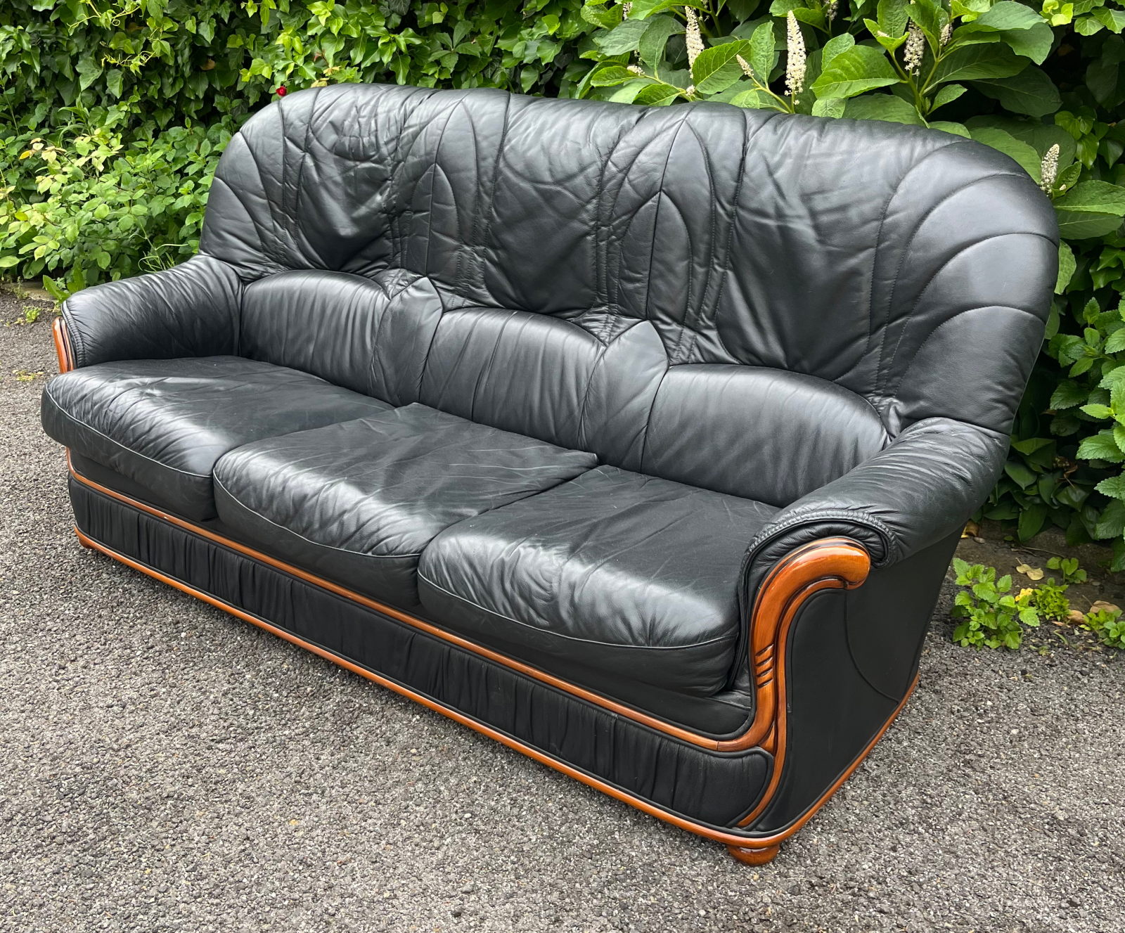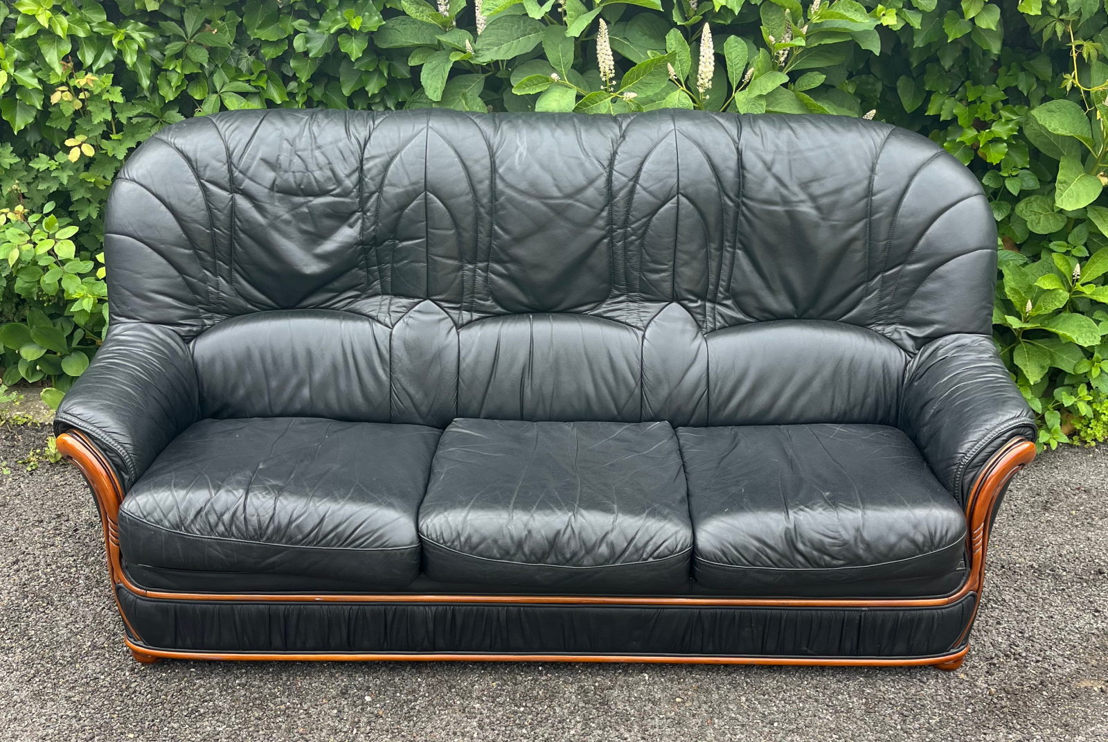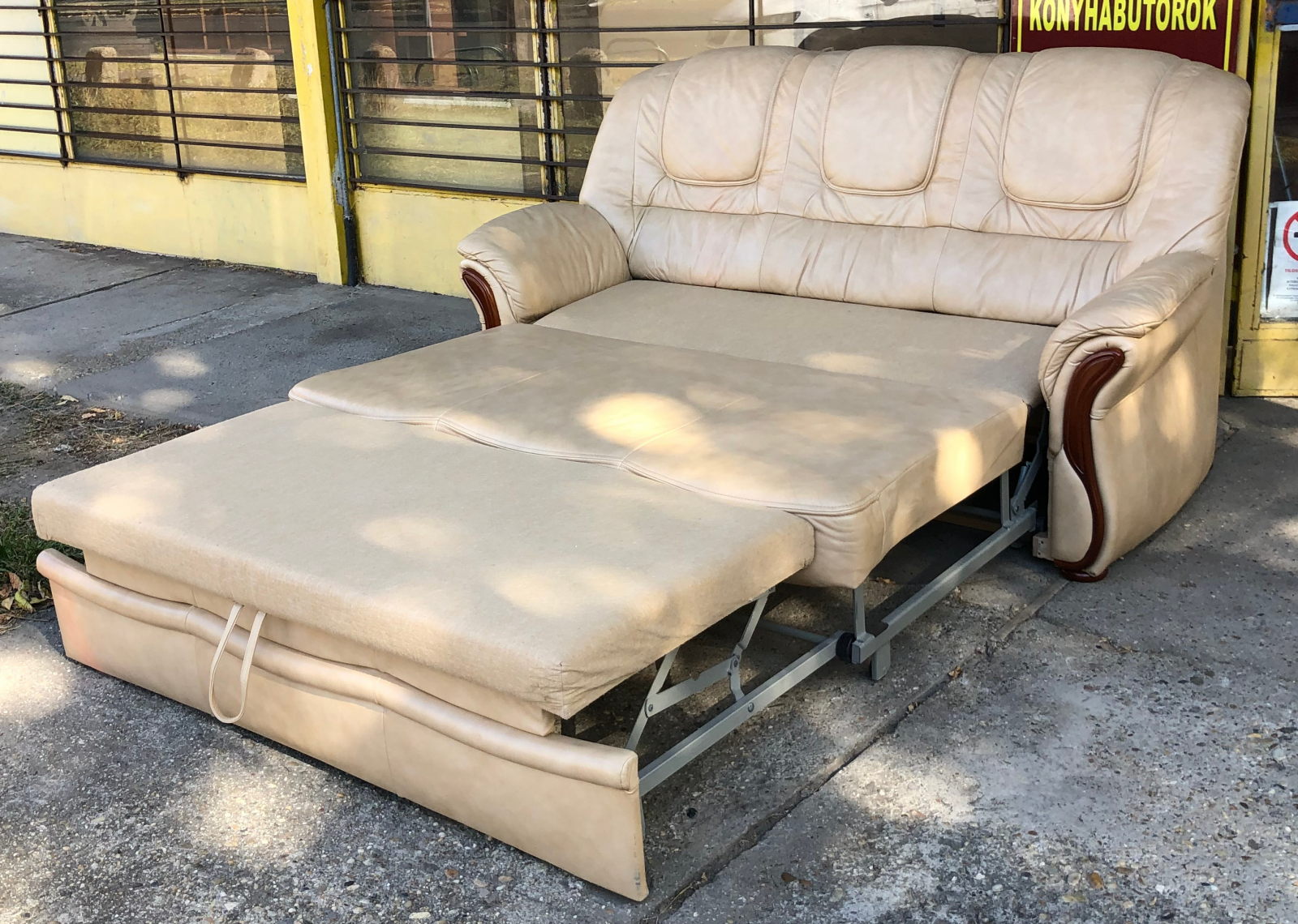 99 800.-ft * Fekete fa betétes ágyazható bőr kanapé (195 szé 90 mély 45/100 magas)