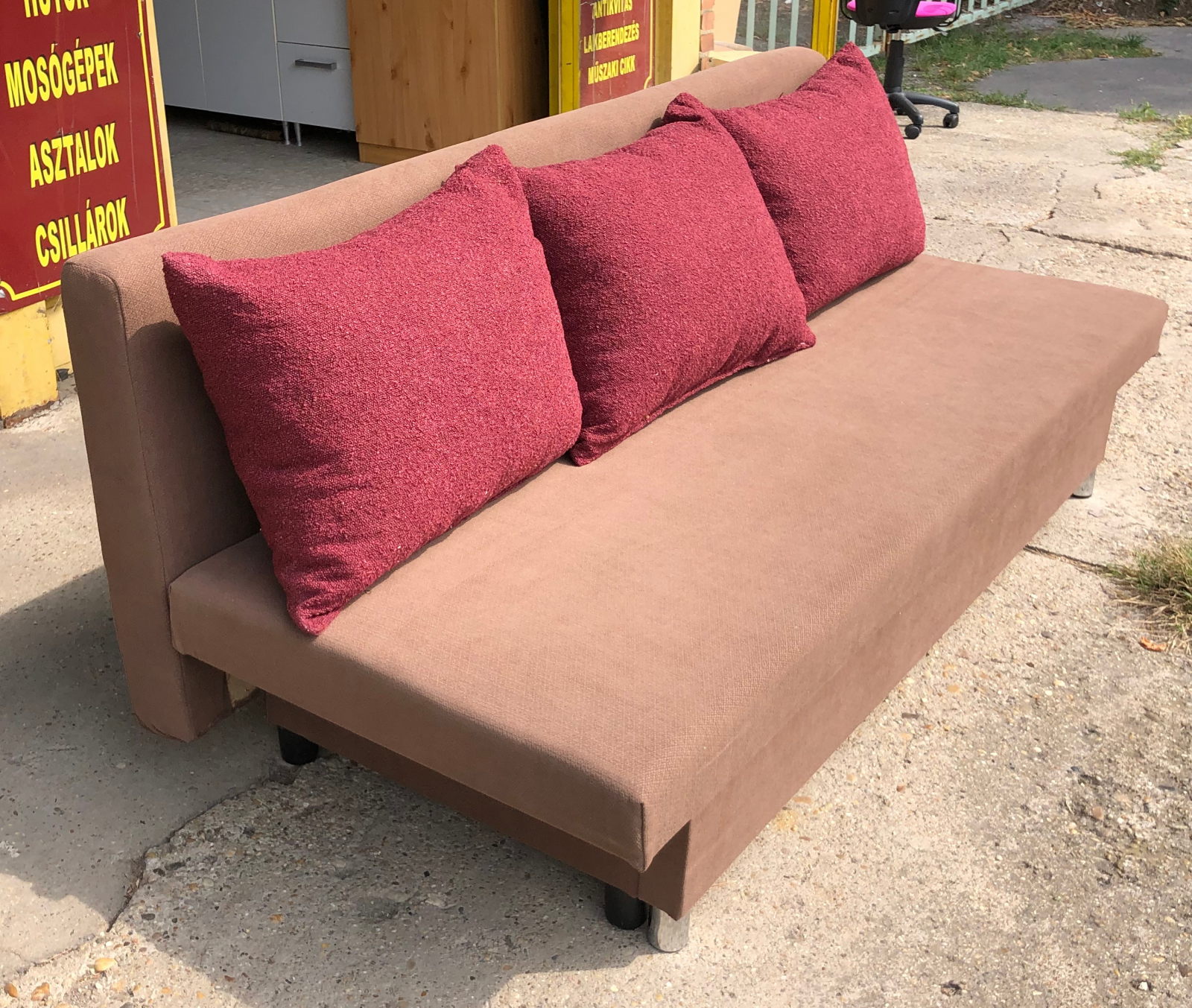 64 800 ft * Barna 3 párnás kanapé ( 190szél 80mély 40/80mag)