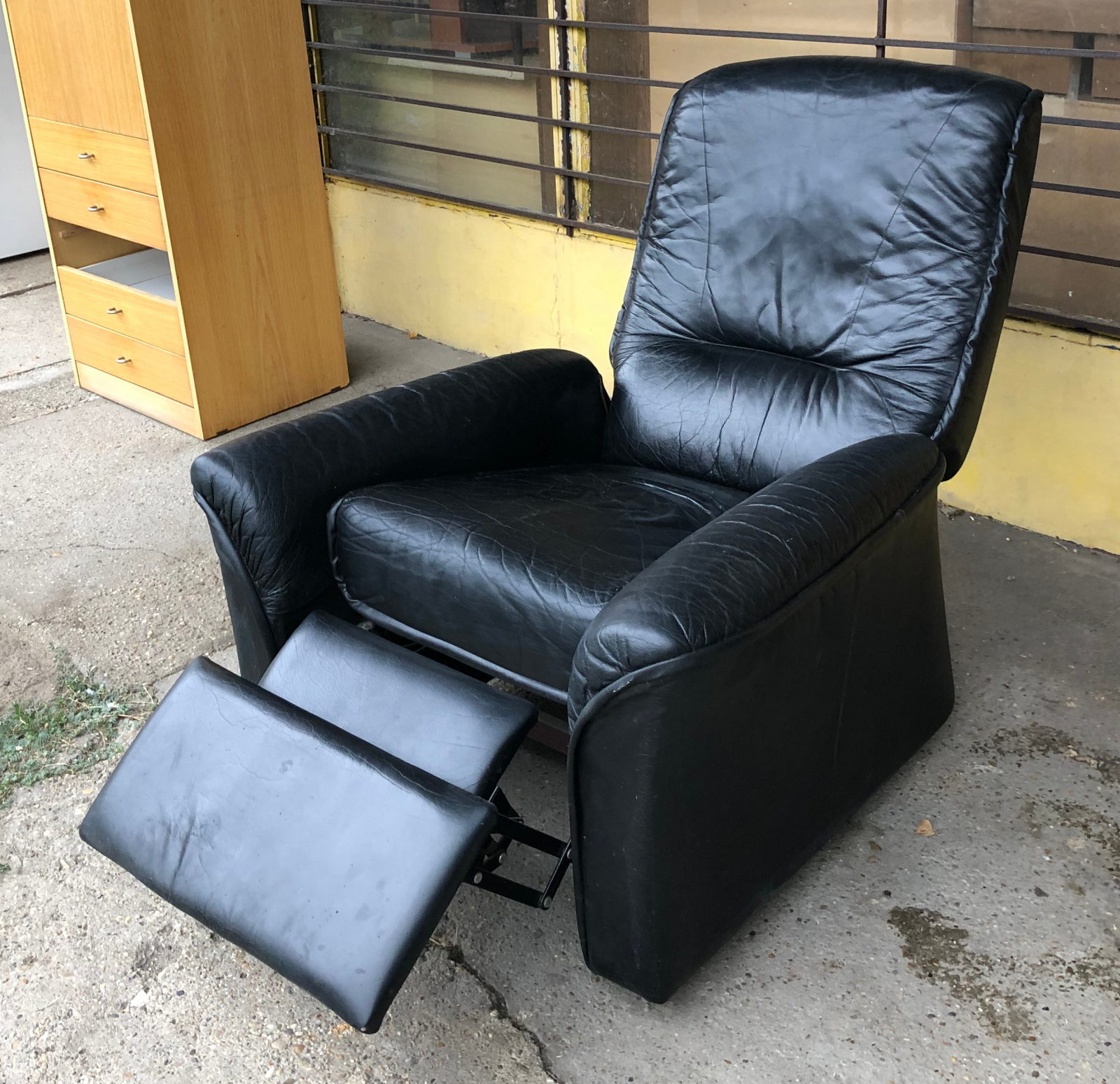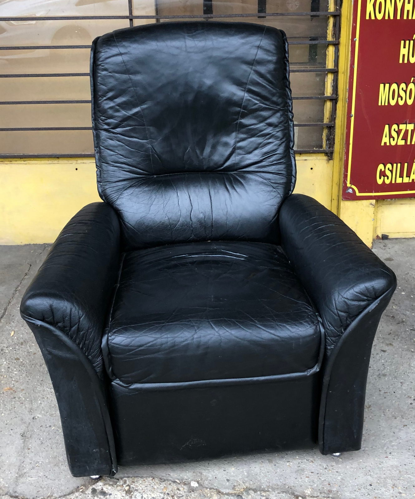 27 800ft * Fekete bőr fotel lábtarós ( 90szél 70mély 40/110mag)